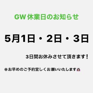 今年のGWは3日間お休みさせていただきます🙇♂️